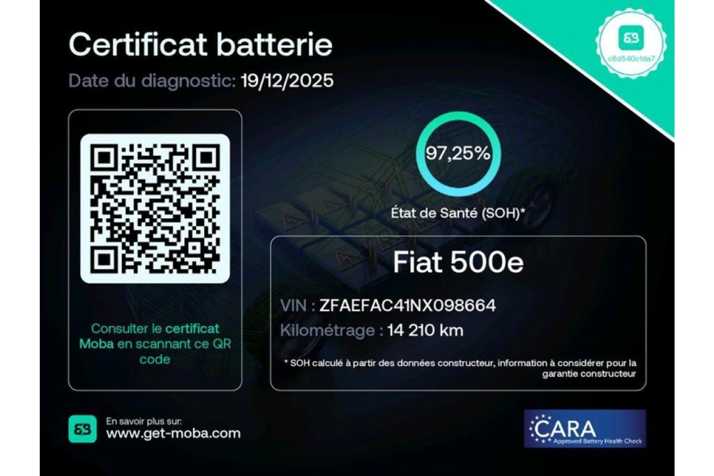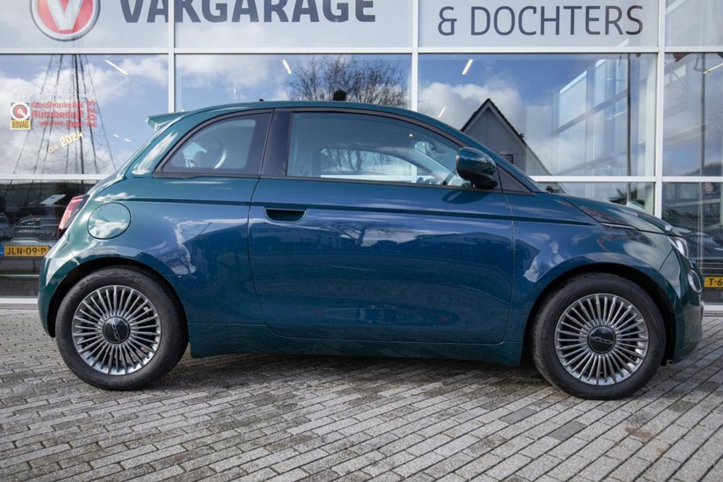 De Fiat 500e 42 kWh Icon is een compacte en volledig elektrische auto die uitblinkt in comfort, gebruiksgemak en efficiëntie. Dankzij de 42 kWh batterij biedt hij een praktische actieradius die zeer geschikt is voor dagelijks gebruik, woon-werkverkeer en stedelijke ritten. De elektrische aandrijving zorgt voor soepele prestaties, directe acceleratie en een stille rijervaring. Door zijn compacte formaat is de auto wendbaar en gemakkelijk te parkeren, terwijl hij toch comfortabel aanvoelt op de snelweg. De Icon-uitvoering is rijk uitgerust met moderne technologie en infotainment en ondersteunt snelladen, waardoor bijladen onderweg eenvoudig is. Dit specifieke exemplaar verkeert in uitstekende staat en is zorgvuldig onderhouden. De batterij heeft een aantoonbare SOH (State of Health), wat inzicht geeft in de conditie van het accupakket en extra zekerheid biedt over de prestaties en levensduur van de batterij. Hierdoor is deze Fiat 500e een betrouwbare en aantrekkelijke keuze voor wie zorgeloos elektrisch wil rijden. The Fiat 500e 42 kWh Icon is a compact, fully electric car that excels in comfort, ease of use, and efficiency. Thanks to its 42 kWh battery, it offers a practical range that is ideal for everyday use, commuting, and urban driving. The electric drive ensures smooth performance, instant acceleration, and a quiet driving experience. Its compact size makes the car maneuverable and easy to park, while still feeling comfortable on the highway. The Icon version is richly equipped with modern technology and infotainment and supports fast charging, making it easy to recharge on the go. This particular model is in excellent condition and has been carefully maintained. The battery has a demonstrable SOH (State of Health), which provides insight into the condition of the battery pack and offers extra assurance about the performance and lifespan of the battery. This makes this Fiat 500e a reliable and attractive choice for those who want carefree electric driving.