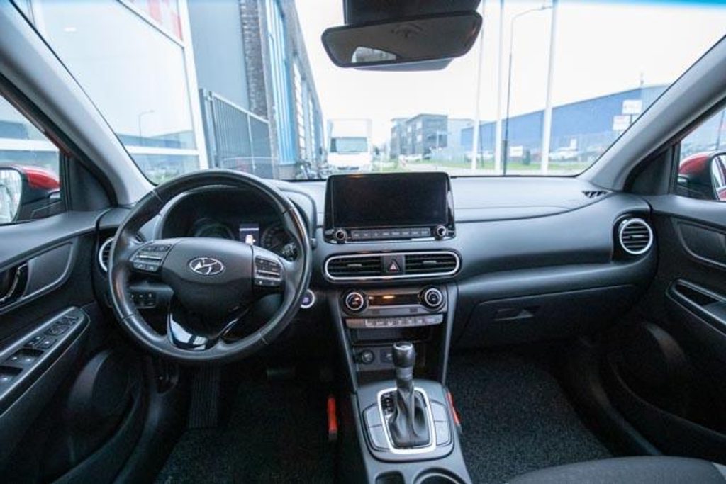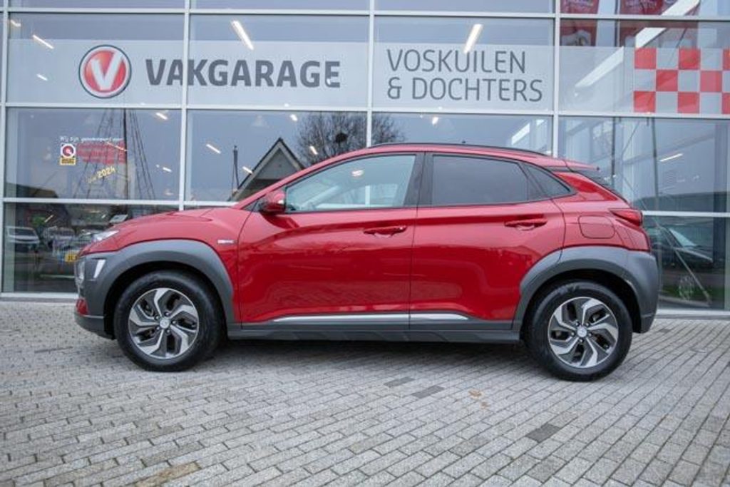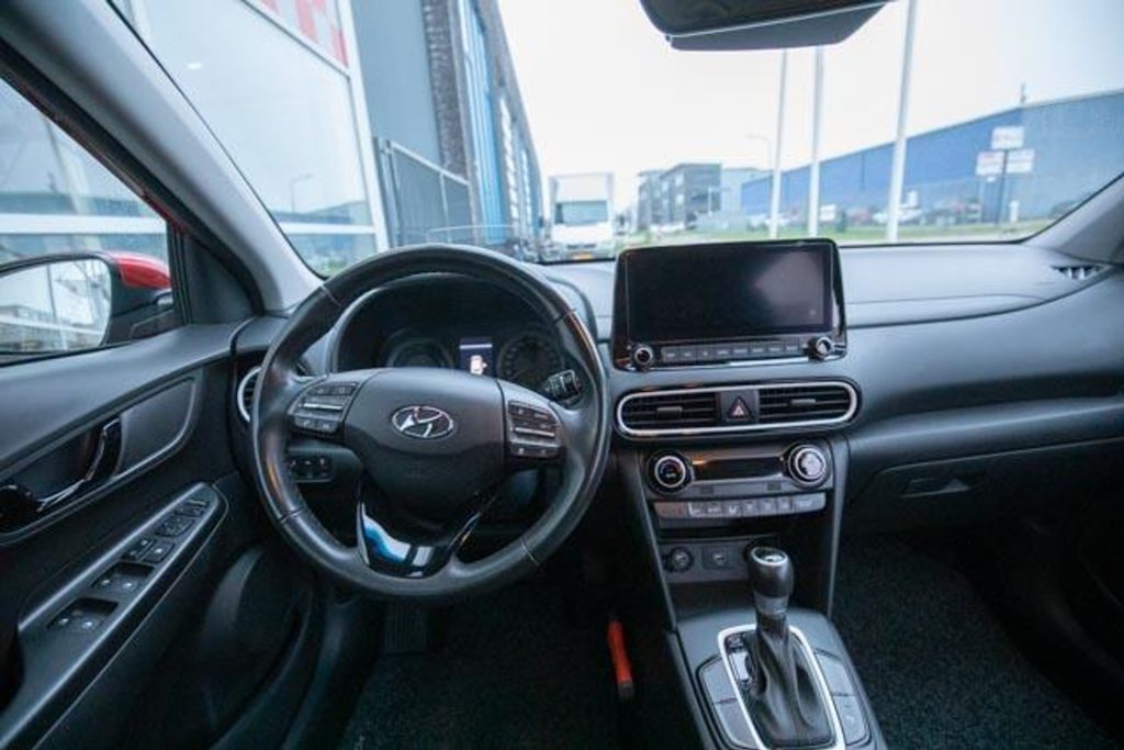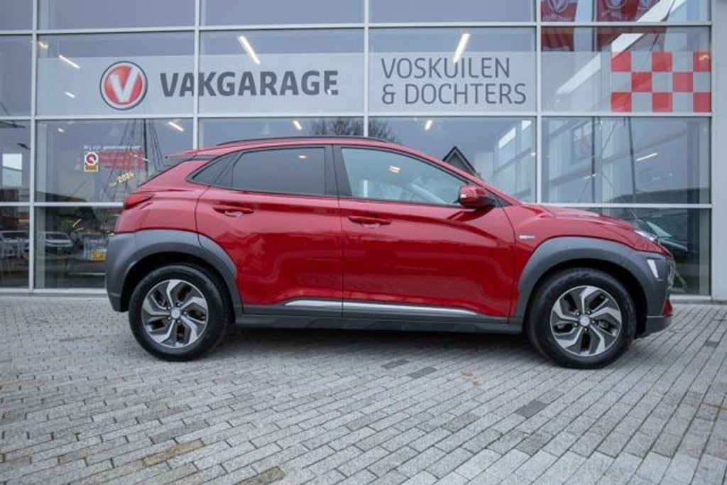 Een prachtige Hyundai Kona Hybrid in de opvallende kleur Pulse Red Metallic. Deze moderne en zuinige SUV is voorzien van een automatische transmissie en combineert comfort met stijl en technologie. Dankzij de hybride aandrijving geniet u van een soepel rijgedrag en een laag brandstofverbruik.