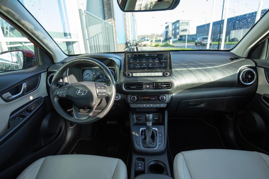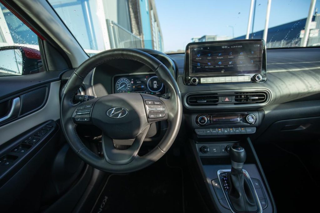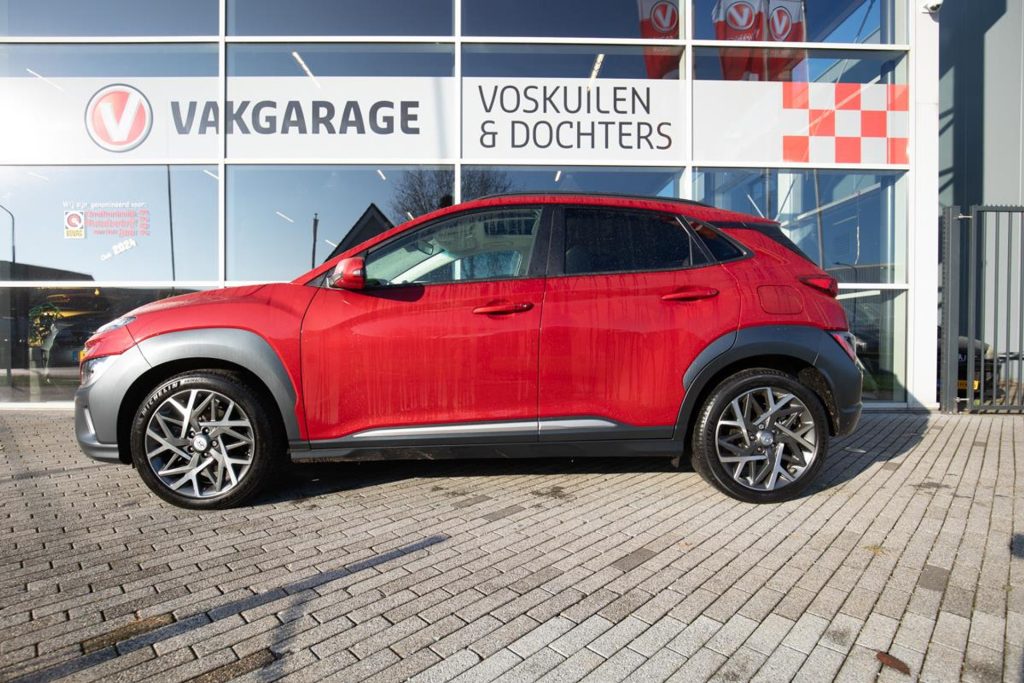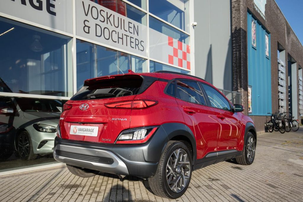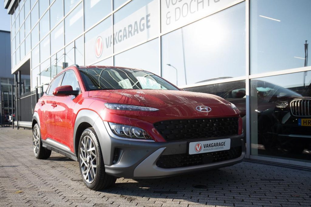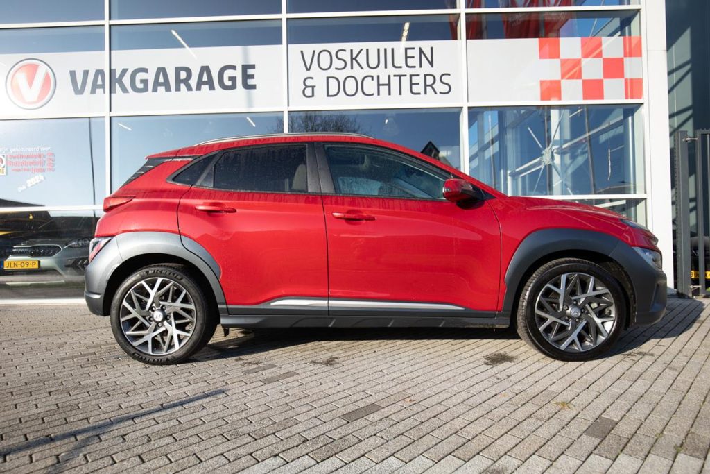 For sale: a stunning Hyundai Kona Mild Hybrid Premium edition in the striking color Pulse Red Metallic, featuring an elegant beige leather interior. This luxurious model comes with a panoramic sunroof and offers plenty of comfort and modern technology, including a head-up display, rearview camera, Adaptive Cruise Control, Apple CarPlay, and Android Auto. The car comes from its first owner and has been meticulously dealer-maintained, with a complete service history available. It is located in Houten, near Utrecht, and ready to be admired. If you would like to schedule a test drive, please call in advance so we can prepare the car for you. The Kona sits on beautiful 18-inch alloy wheels and comes with a 12-month BOVAG warranty at no additional cost. Trade-in and financing options are available.