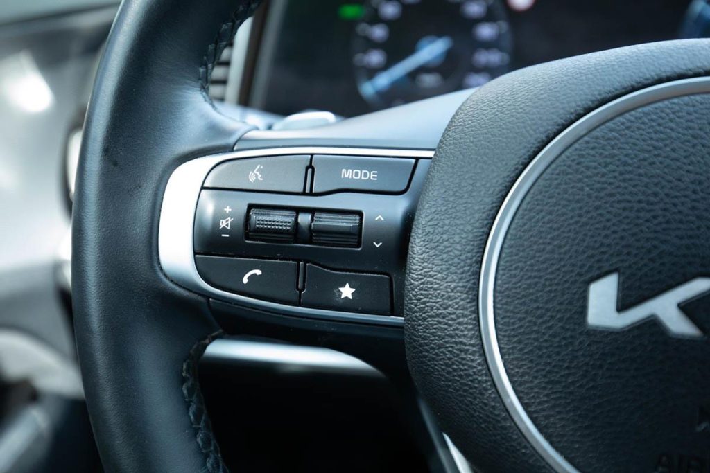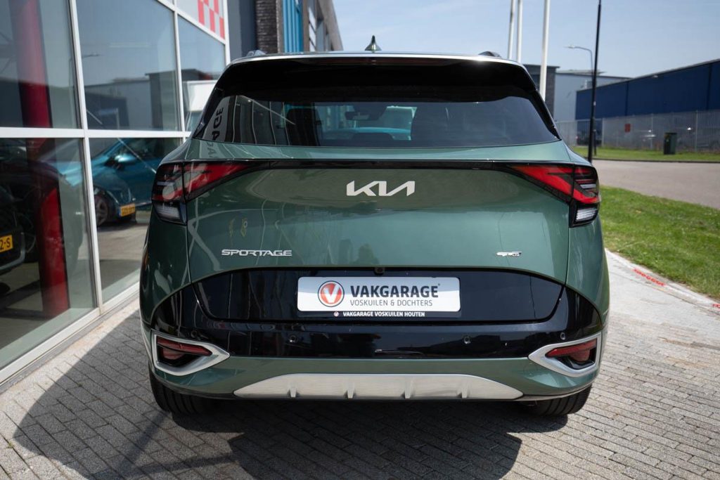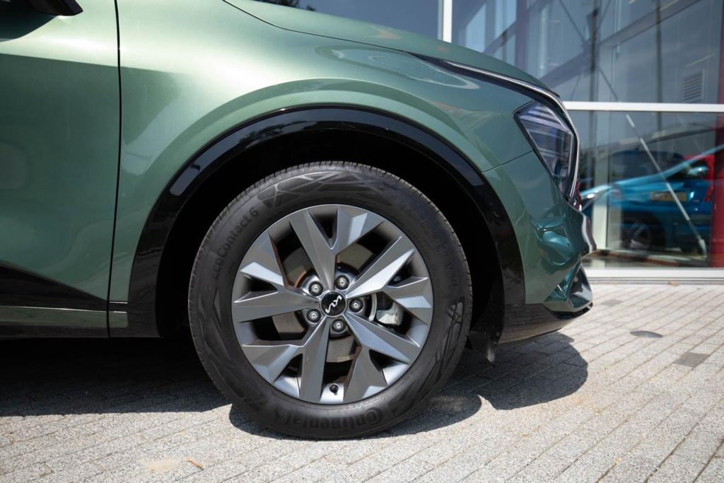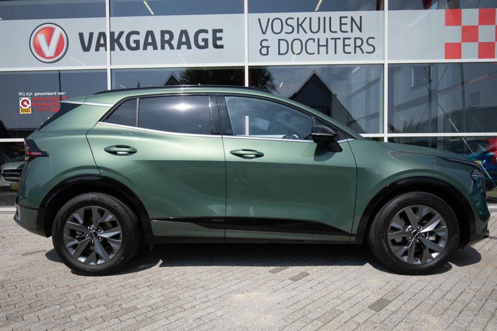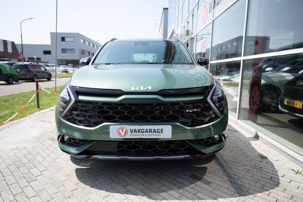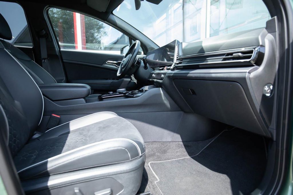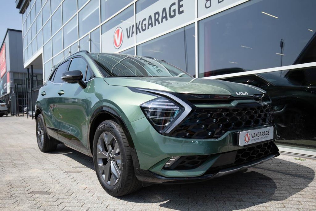 The 2023 Kia Sportage HEV GT-Line in Experience Green is a hybrid SUV with a powerful and fuel-efficient 230-horsepower powertrain. It is a self-charging hybrid, which means it does not need a charging cord. On top of that, this SUV is also allowed to tow 1650kg. The car has a sporty and modern appearance with LED lights, 18-inch alloy wheels in the GT look. The interior is luxurious with suede/leather-look upholstery, heated front seats, a Harman Kardon audio system and advanced infotainment options. In terms of safety, the Sportage is also extensively equipped with blind spot assistance, adaptive cruise control and a camera, among other features.