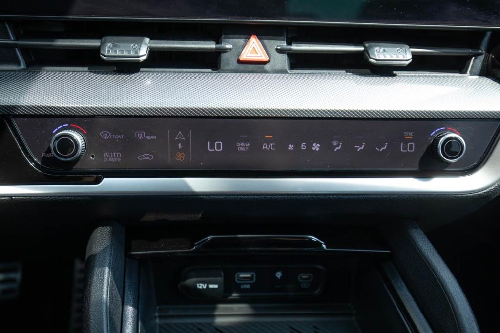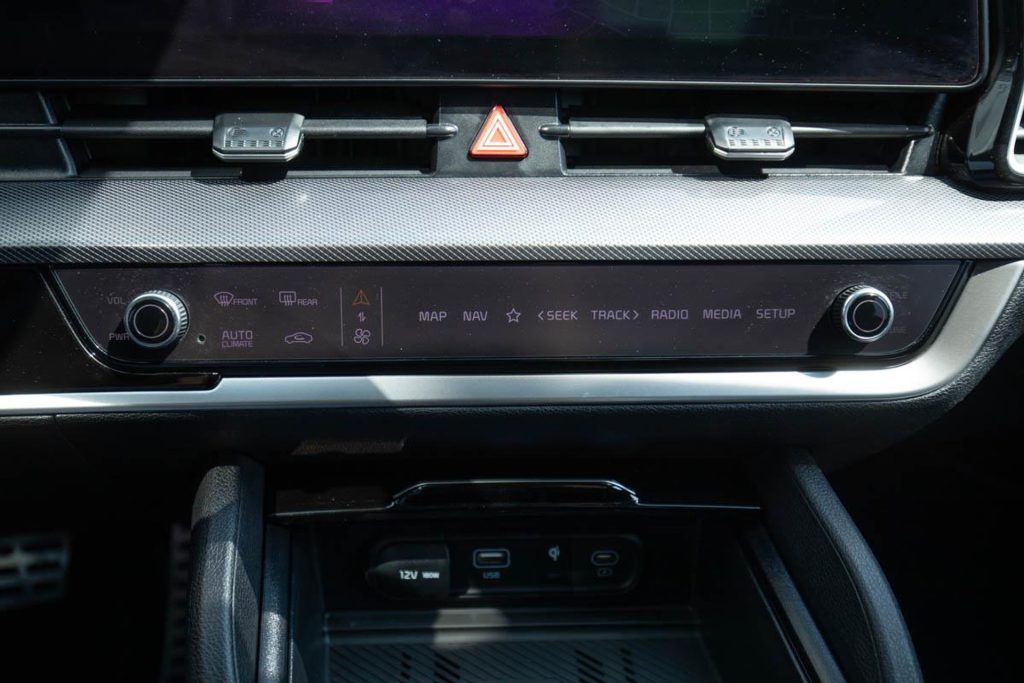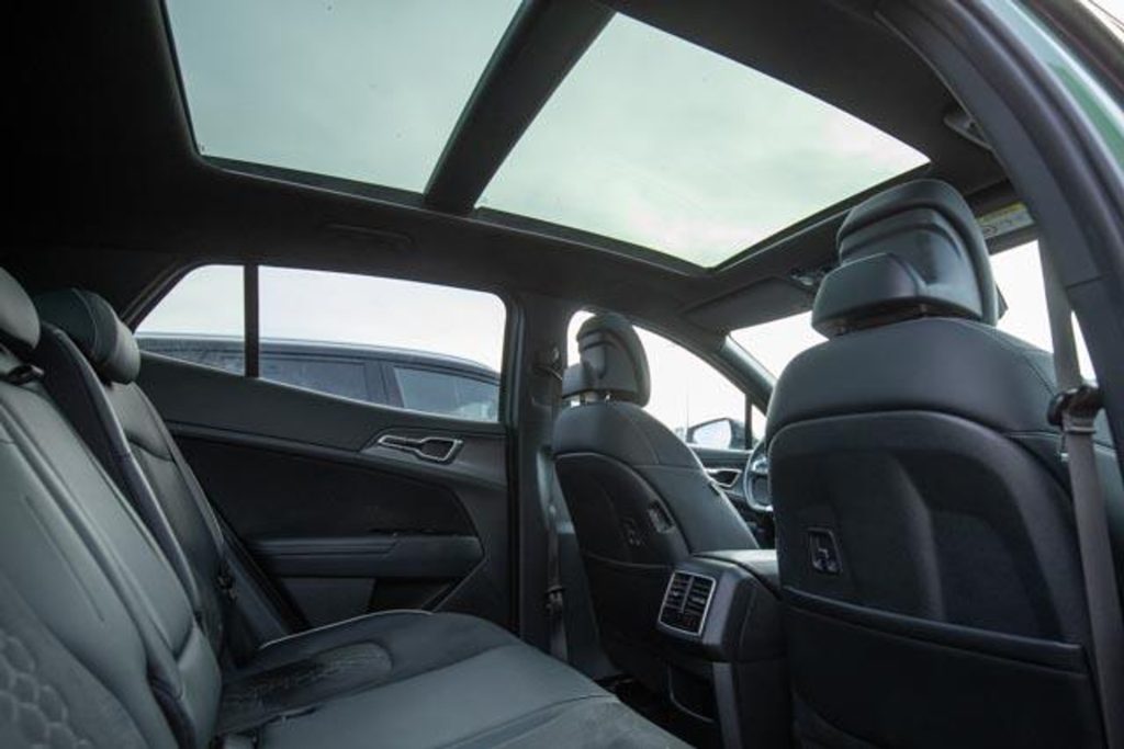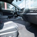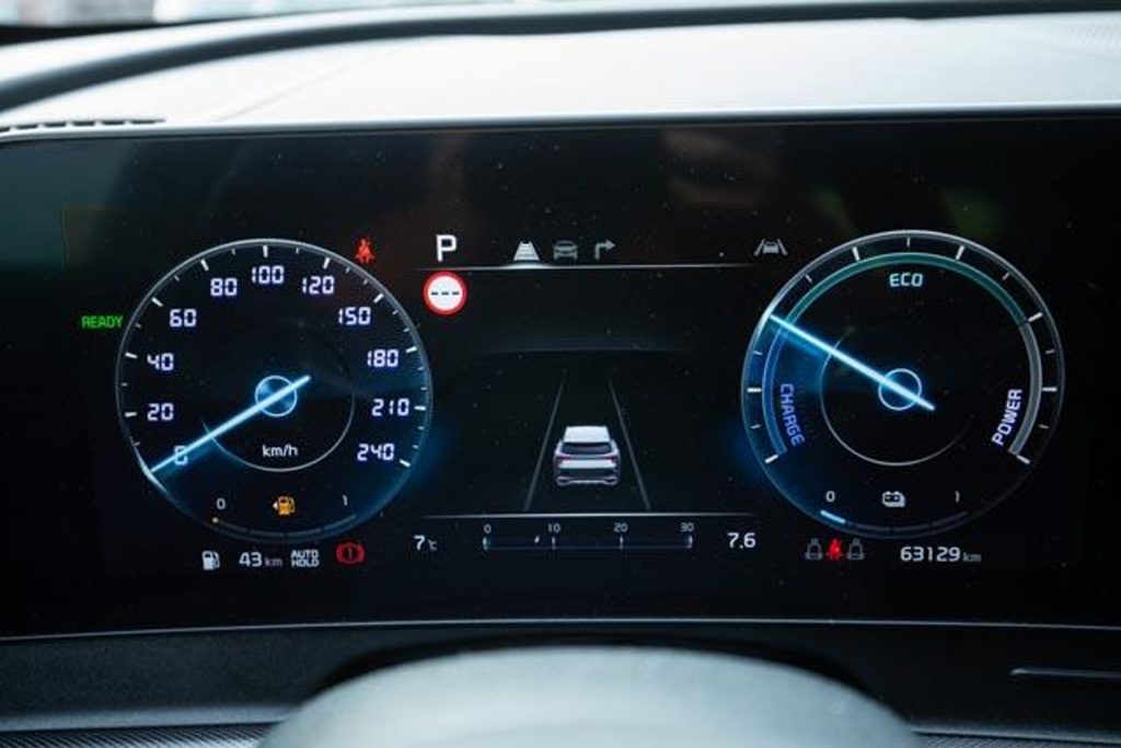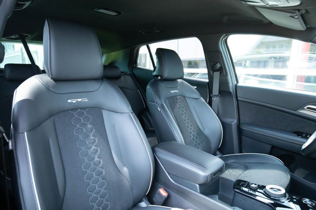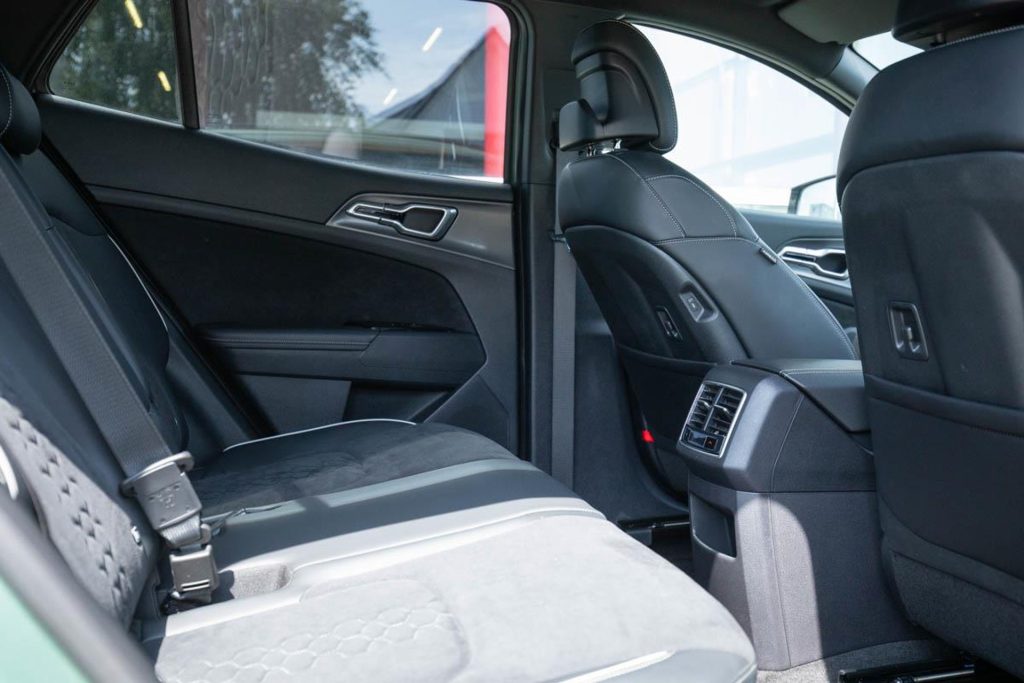 The 2023 Kia Sportage HEV GT-Line in Experience Green is a hybrid SUV with a powerful and fuel-efficient 230-horsepower powertrain. It is a self-charging hybrid, which means it does not need a charging cord. On top of that, this SUV is also allowed to tow 1650kg. The car has a sporty and modern appearance with LED lights, 18-inch alloy wheels in the GT look. The interior is luxurious with suede/leather-look upholstery, heated front seats, a Harman Kardon audio system and advanced infotainment options. In terms of safety, the Sportage is also extensively equipped with blind spot assistance, adaptive cruise control and a camera, among other features.
