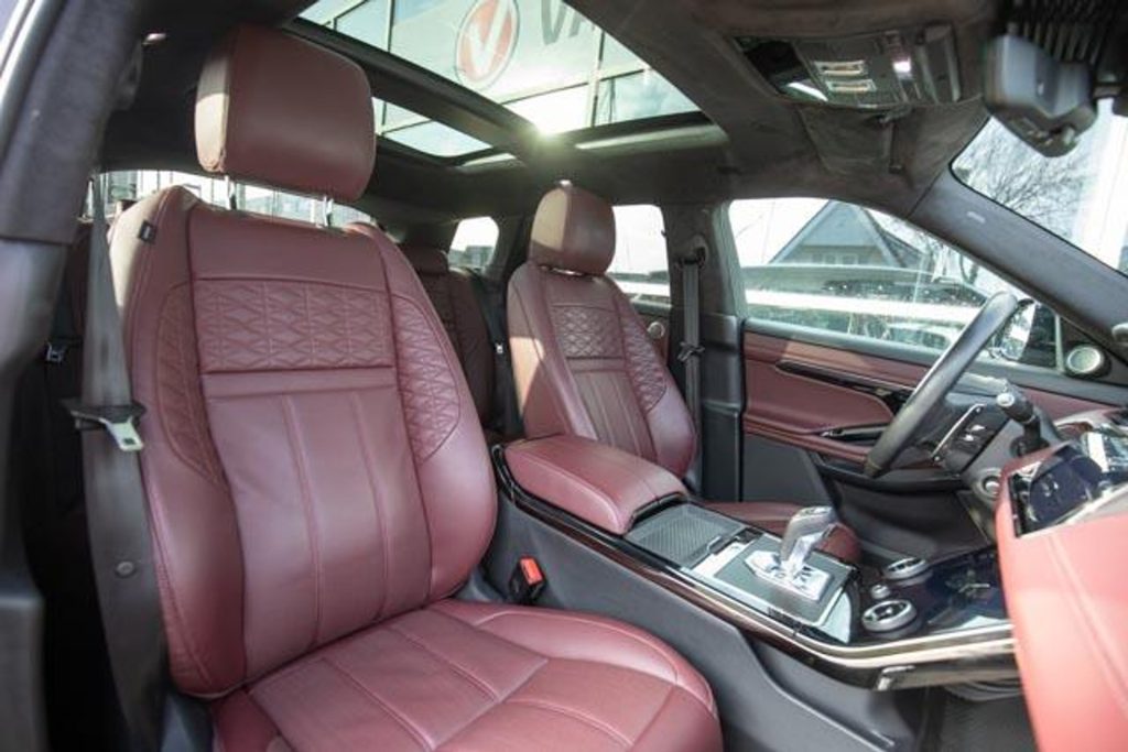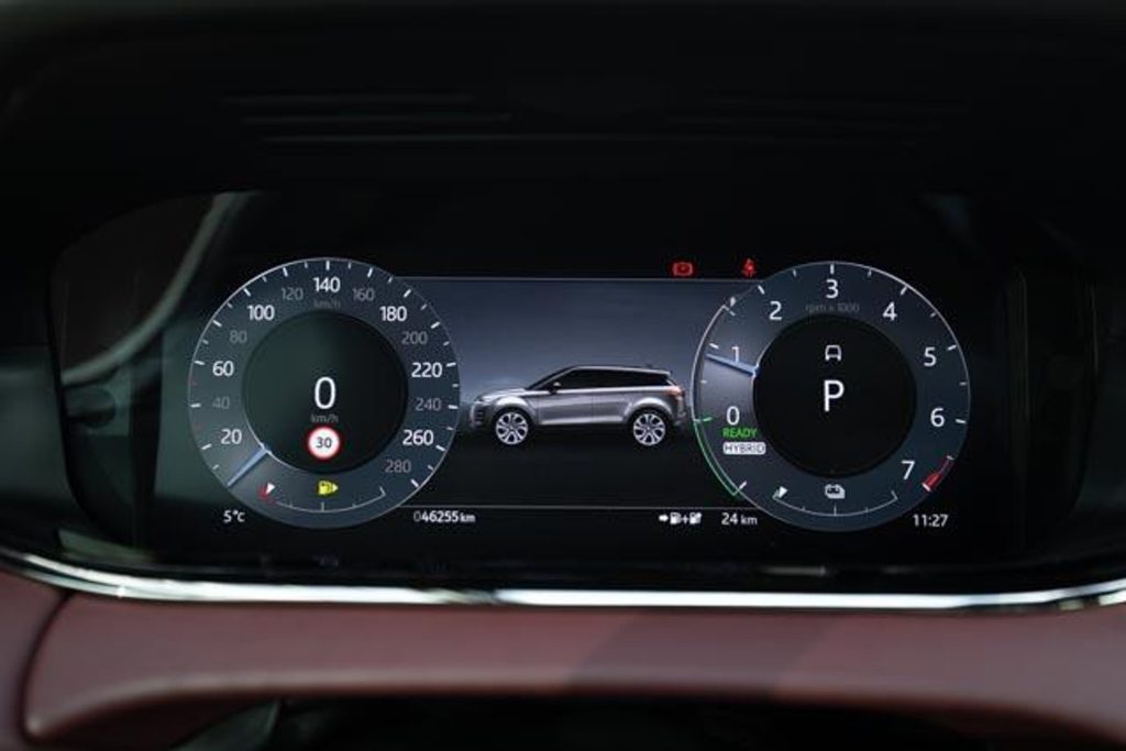 This fully equipped Evoque stands out for its stylish appearance and high-quality finish. The beautiful burgundy leather interior gives it a particularly luxurious and warm atmosphere, while the panoramic roof provides extra light and a spacious feel to the interior. The plug-in hybrid powertrain offers comfortable electric driving for everyday journeys, with the security of the gasoline engine for longer distances.