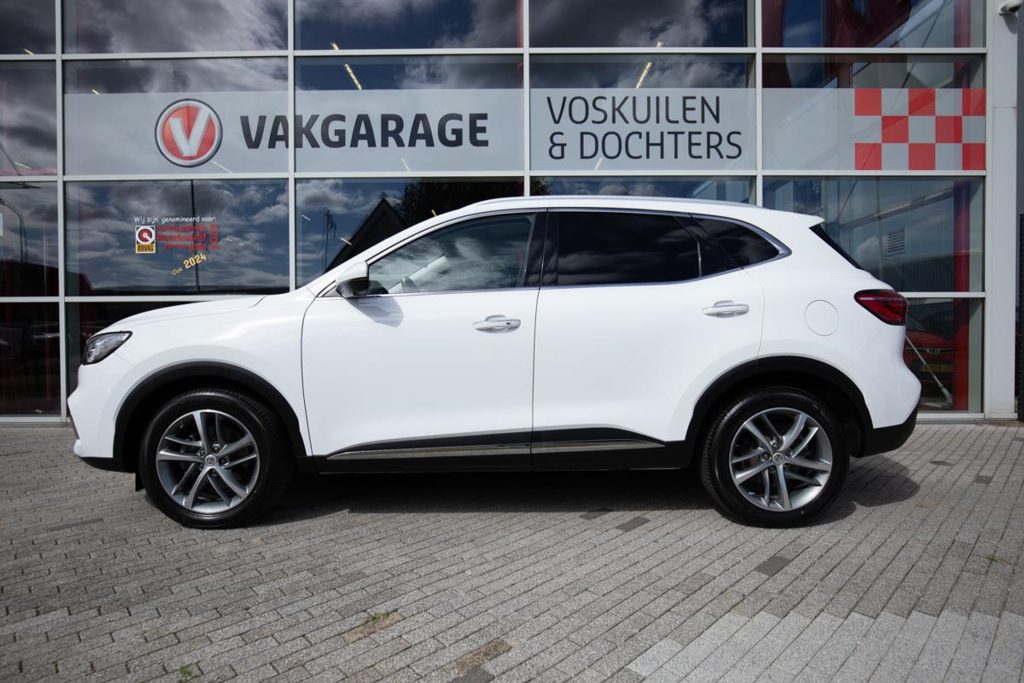 The MG EHS Plug-in Hybrid is the perfect combination of luxury, efficiency, and versatility. This stylish SUV offers performance and luxury comparable to the Jaguar E-Pace and Mazda CX5 and features a full leather interior, ensuring a refined and comfortable driving experience. The panoramic roof allows you to enjoy a wonderful amount of natural light and gives the vehicle a spacious feel. Thanks to its plug-in hybrid technology, you can drive extremely economically, with a specified electric range of 52 kilometers. This makes the MG EHS ideal for both short and long journeys, and you can easily charge the car with your own solar panels.