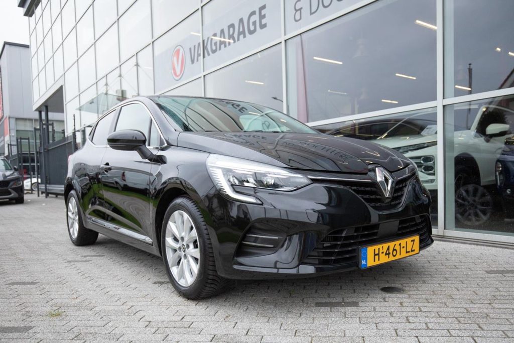 Renault Clio Intens 2020 in sportief zwart, handgeschakeld en zuinig in gebruik. Deze Clio combineert stijl met comfort en is voorzien van lichtmetalen velgen en chroomaccenten voor een moderne, sportieve uitstraling.