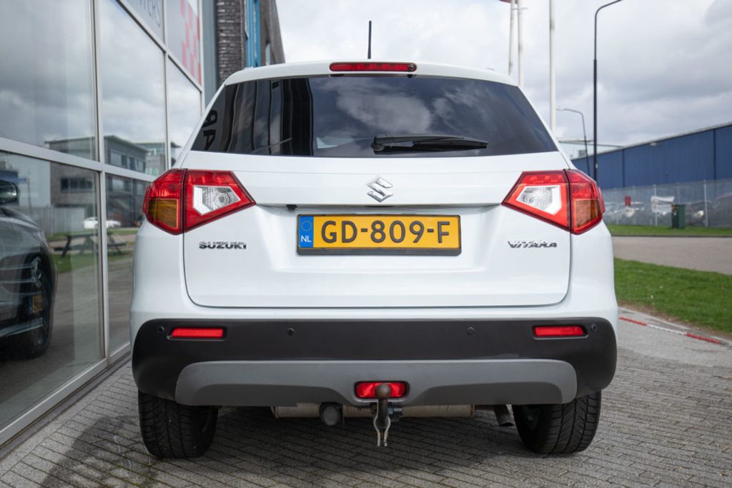 De Vitara is voorzien van een achteruitrijcamera en parkeersensoren, wat inparkeren eenvoudig en veilig maakt. Daarnaast beschikt de auto over een trekhaak en mag hij maar liefst 1200 kg trekken, ideaal voor een caravan, aanhanger of fietsendrager.