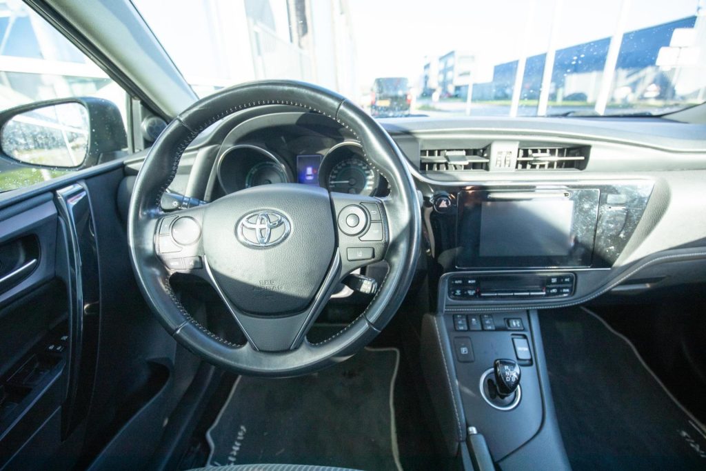 Toyota Auris Touring Sports 1.8 Hybrid Dynamic in luxury trim. A representative, comfortable, and very economical hybrid family car. This Auris comes from its first owner and has a full service history, offering certainty and transparency. The car has Bluetooth, navigation, heated seats, a luxury half-leather interior, a panoramic roof, and attractive exterior trim. Thanks to its hybrid technology, the car is quiet, comfortable, and exceptionally economical. The car is sold with a 12-month BOVAG warranty. The Auris is located in Houten near Utrecht. Please call in advance so we can prepare the car for a test drive or viewing. Trade-ins are possible and we can also help with suitable financing