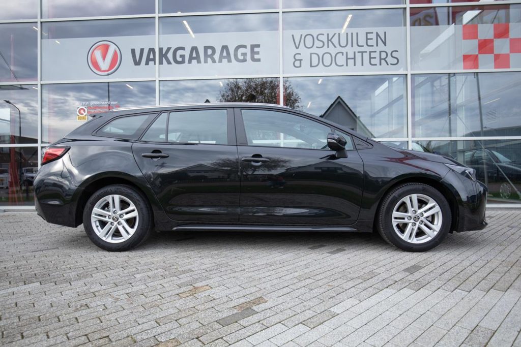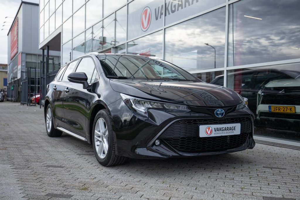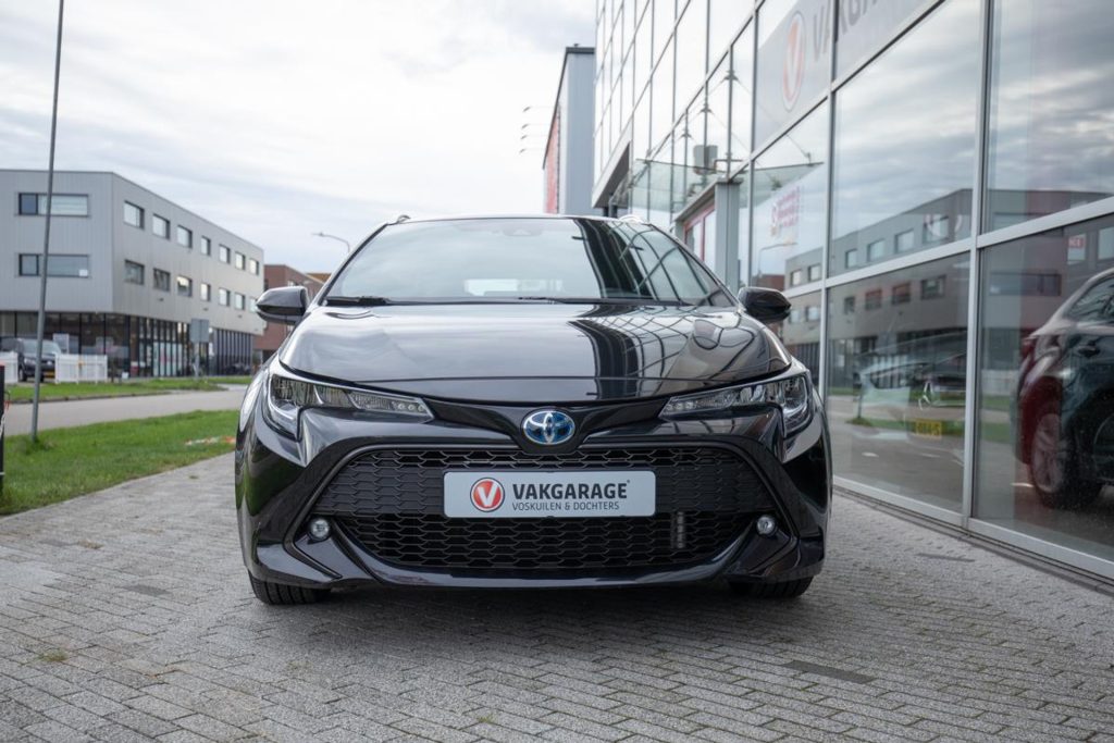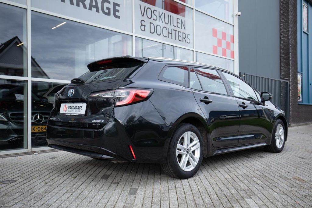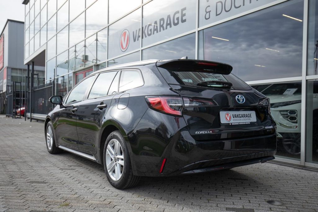 Toyota Corolla Touring Hybrid Business in black, with CarPlay and Android Auto, rear view camera, heated seats, and navigation. This efficient, economical, and stylish car comes with a 12-month Bovag warranty. Viewable in Houten near Utrecht. Contact us for a test drive!