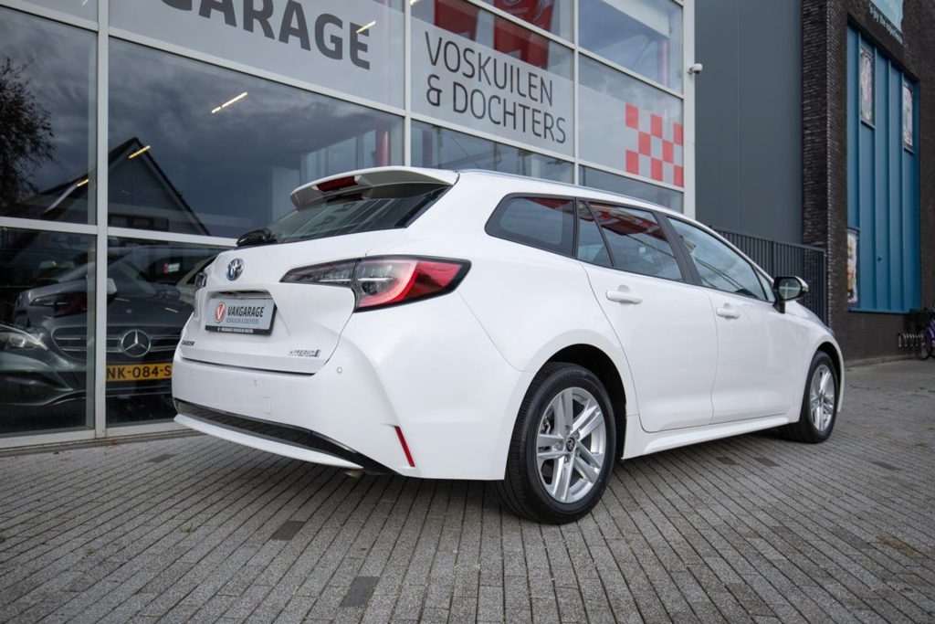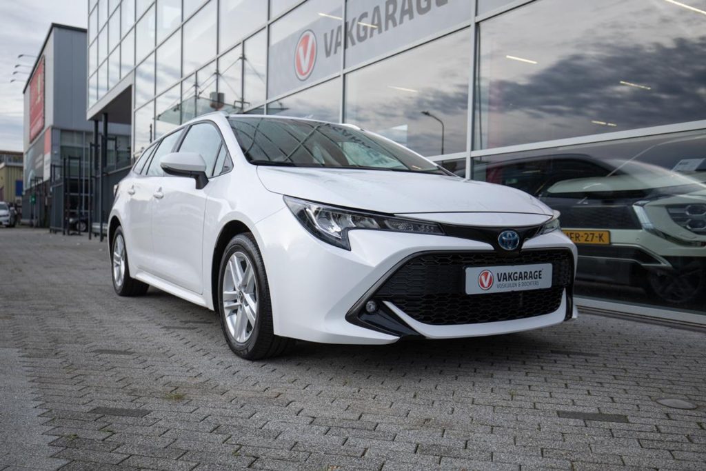 Toyota Corolla Touring Hybrid Comfort in white, from the first owner, fully dealer maintained with full service history. With Steeringwheel and seat heating, navigation, CarPlay and Android Auto, parking sensors, rear view camera, heated seats, and many safety features. This efficient, economical, and stylish car comes with a 12-month Bovag warranty. Viewable in Houten near Utrecht. Contact us for a test drive!