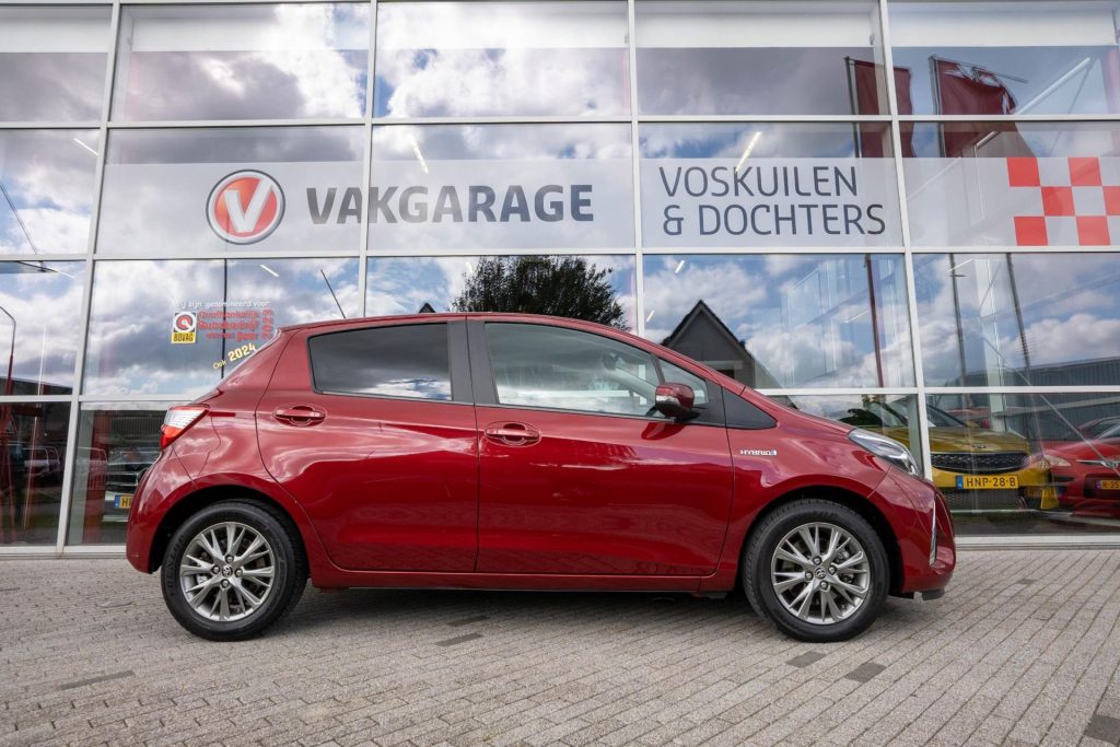 Toyota Yaris Hybrid in burgundy red. This car comes from its first owner and has always been well maintained, with a full service history. The Yaris is known for its fuel efficiency and is equipped with a smooth automatic transmission. In addition, this car has a rearview camera, navigation, climate control, and Bluetooth, making every ride comfortable and practical. You can purchase this Toyota with a 12-month BOVAG warranty for extra security. The car can be viewed immediately in Houten near Utrecht.