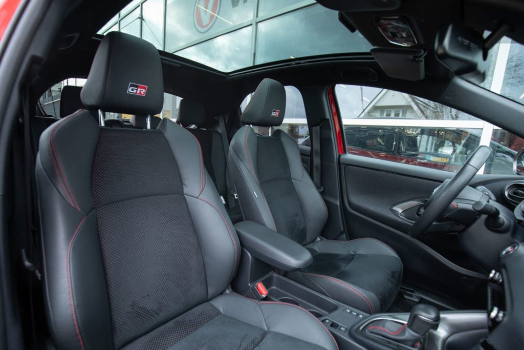 Binnenin wordt u verwelkomd door sportieve GR Sport stoelen, afgewerkt in een luxe leder/alcantara interieur dat zowel comfort als een premium gevoel biedt. Dankzij het head-up display houdt u uw ogen veilig op de weg terwijl belangrijke rij-informatie direct in uw zichtveld wordt geprojecteerd.