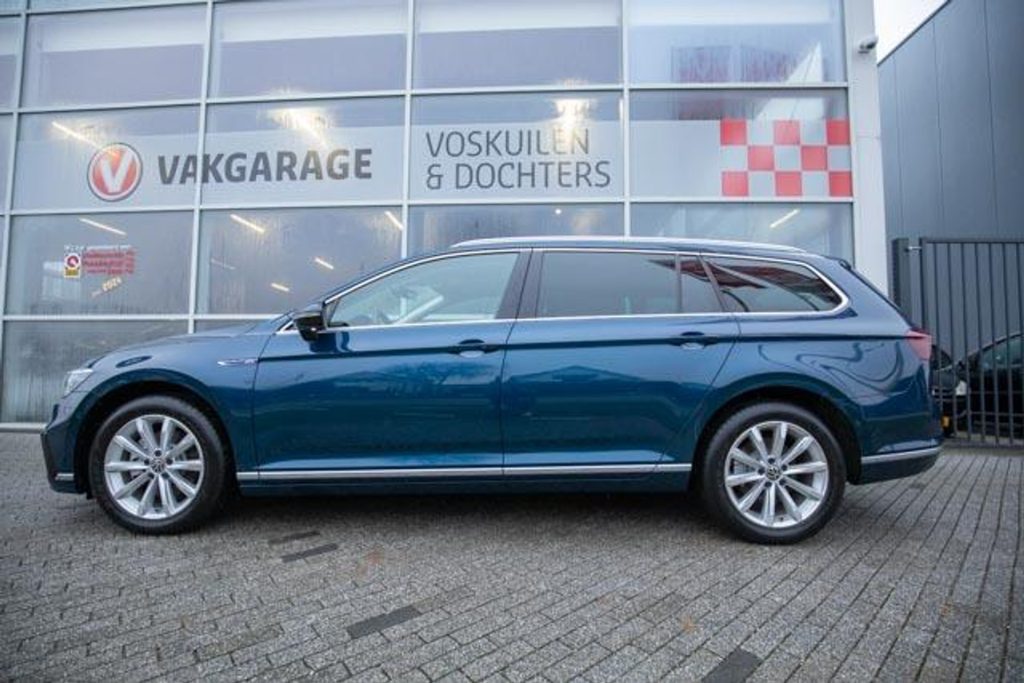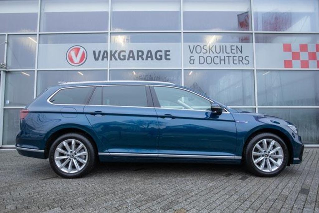 Prachtige en complete Volkswagen Passat Variant PHEV in de stijlvolle kleur Aquamarin blauw, afkomstig van de eerste eigenaar en voorzien van een volledige en aantoonbare onderhoudshistorie. Deze Passat combineert ruimte, comfort en moderne techniek met het voordeel van plug-in hybride rijden.